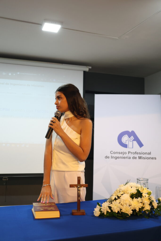 El acto de ceremonia de matriculados se dió inicio según lo dispuesto por la Ley I N° 11 ART. N° 21, punto 2) y N° 29 punto B) Derechos, atribuciones y funciones: establécese la ceremonia de juramento a los matriculados de carácter voluntario. Dando la bienvenida a los flamantes nuevos matriculados del CPIM; quienes tomaron juramento y presidieron el acto protocolar en representación de la Comisión Directiva el Presidente, Vicepresidente y Secretaria respectivamente Ing. Cesar Petruszynski, Ing. Vanesa Morales y MMO. Alejandra Sosa. A continuación se detallan los profesionales que prestaron juramento: – Técnico Superior En Construcciones Civiles SOSA SERGIO FRANCISCO.– Maestro Mayor De Obras RIOS FLAVIA ANTONELA.– Maestro Mayor De Obras OSORIO KEVIN RUBEN.– Maestro Mayor De Obras ZBOROWSKI JACEK.– Ingeniera Civil RAMOS BAEZ MARIA BELEN.– Ingeniera Química GIMENEZ ANA LAURA.– Ingeniero Civil BONDAR PEDRO MARTIN.– Ingeniero Civil NICOLÁS GUIDURA.– Maestro Mayor de Obras FERNANDO CONTRERAS.– Maestro Mayor de Obras ESPINOSA MAXIMO.– Ingeniero Electromecánico SEBASTIÁN REINHERMER. ¡Felicitaciones! Contamos con la presencia de autoridades institucionales: – Arq. Diego Larrea – Presidente Colegio de Arquitectos de Misiones. Caja de Profesionales de la Ingeniería, Arquitectura, Agrimensura, Agronomia y otras profesiones provincia de Misiones (CAPROIA): – Agrim. Oscar Camblong – Presidente.– Ing. Luis Bianchi – Tesorero. – Dr. Ricardo Babiak – Presidente de la Administración portuaria Posadas – Santa Ana. – MMO Daniel Rios – Presidente de la FEBAP Federación Económica Brasil Argentina y Paraguay y Coordinador de la Comisión de Técnicos CPIM.