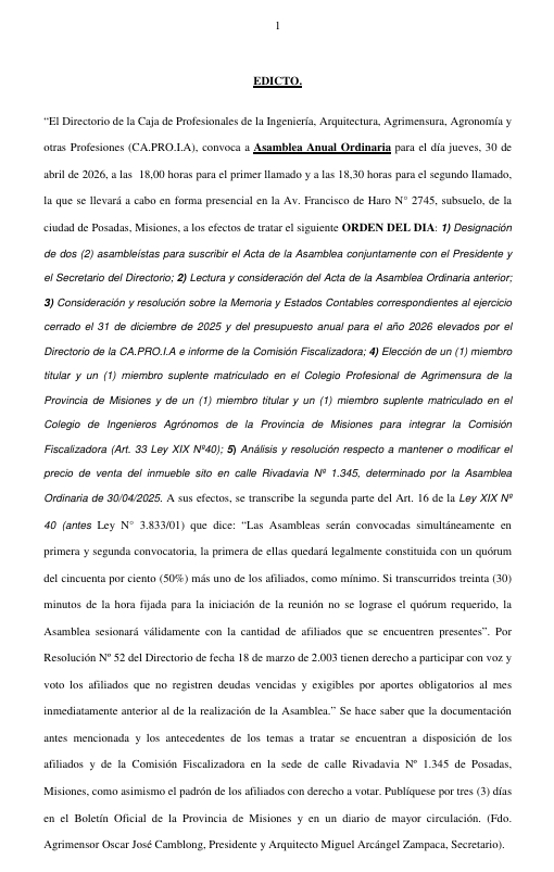ASAMBLEA ANUAL ORDINARIA DE CAPROIA – 30 de ABRIL 18:00 HS