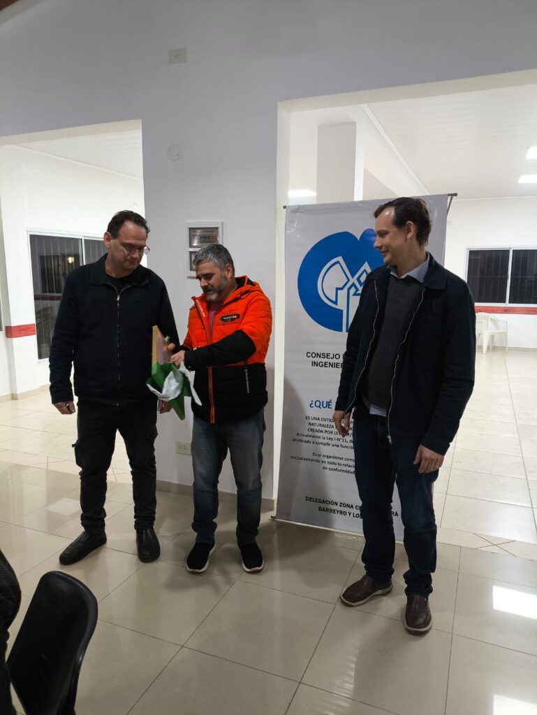 El Presidente de sede Oberá Ing. Francisco Stevensson junto al Presidente sede central Ing. César Petruszynski brindaron emotivas palabras, detalles de gestiones e invitaron a los demás matriculados a continuar articulando acciones en post de la matriculación.